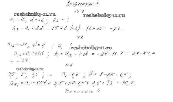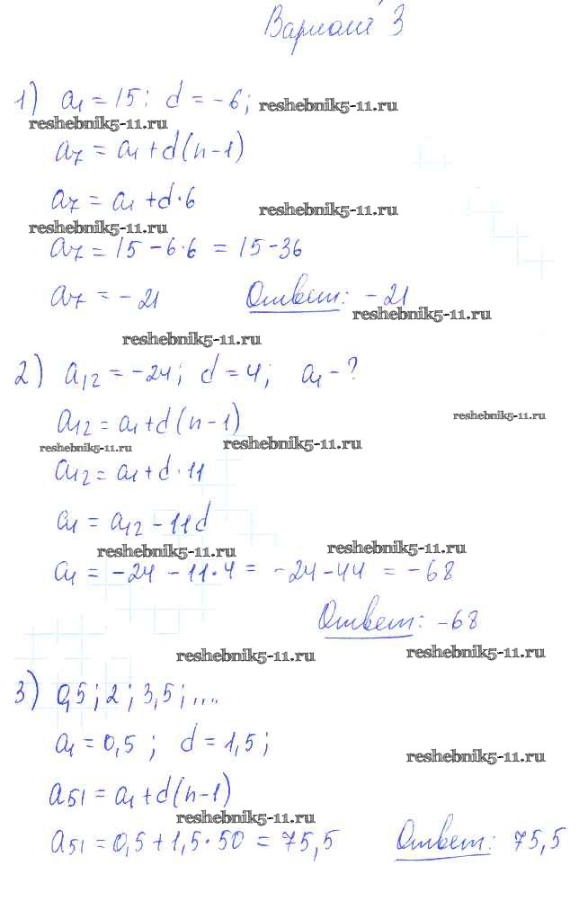 Готовая домашняя работа с ответами по Алгебре за 9 класс Александрова Самостоятельные работы УМК Базовый уровень Мнемозина 2016 ФГОС - СР-22. Арифметическая прогрессия вариант 3