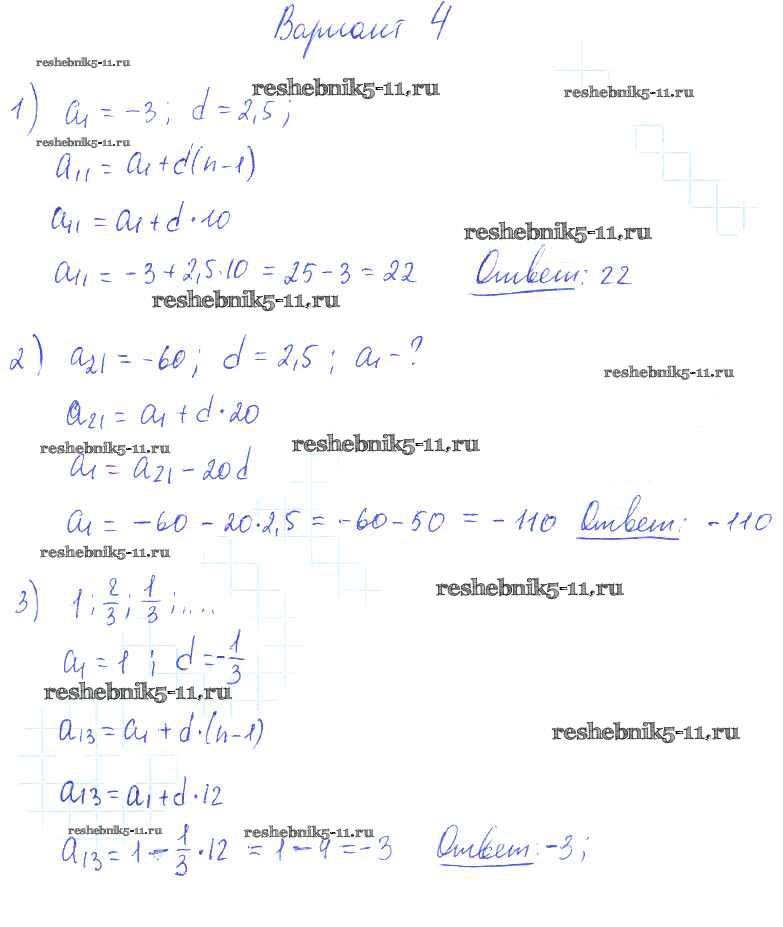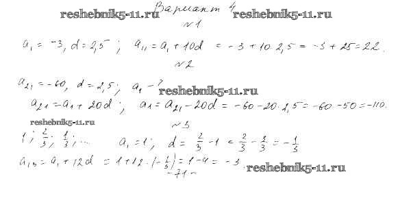Готовая домашняя работа с ответами по Алгебре за 9 класс Александрова Самостоятельные работы УМК Базовый уровень Мнемозина 2016 ФГОС - СР-22. Арифметическая прогрессия вариант 4