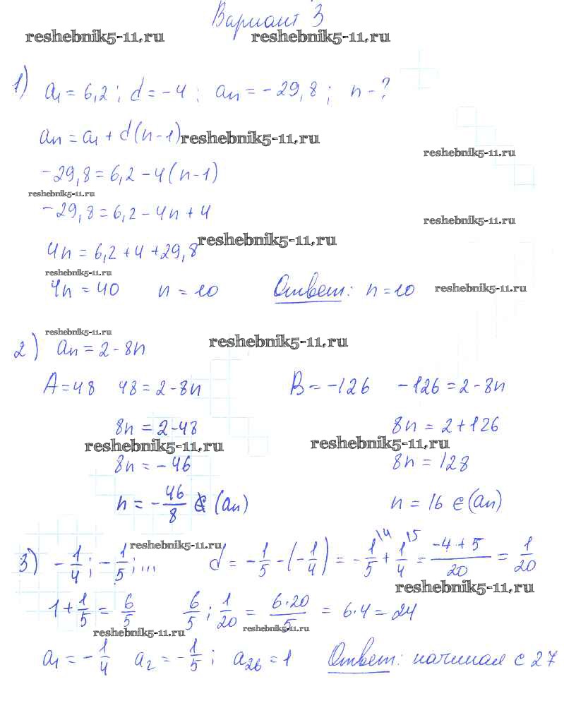 Готовая домашняя работа с ответами по Алгебре за 9 класс Александрова Самостоятельные работы УМК Базовый уровень Мнемозина 2016 ФГОС - СР-23. Арифметическая прогрессия вариант 3