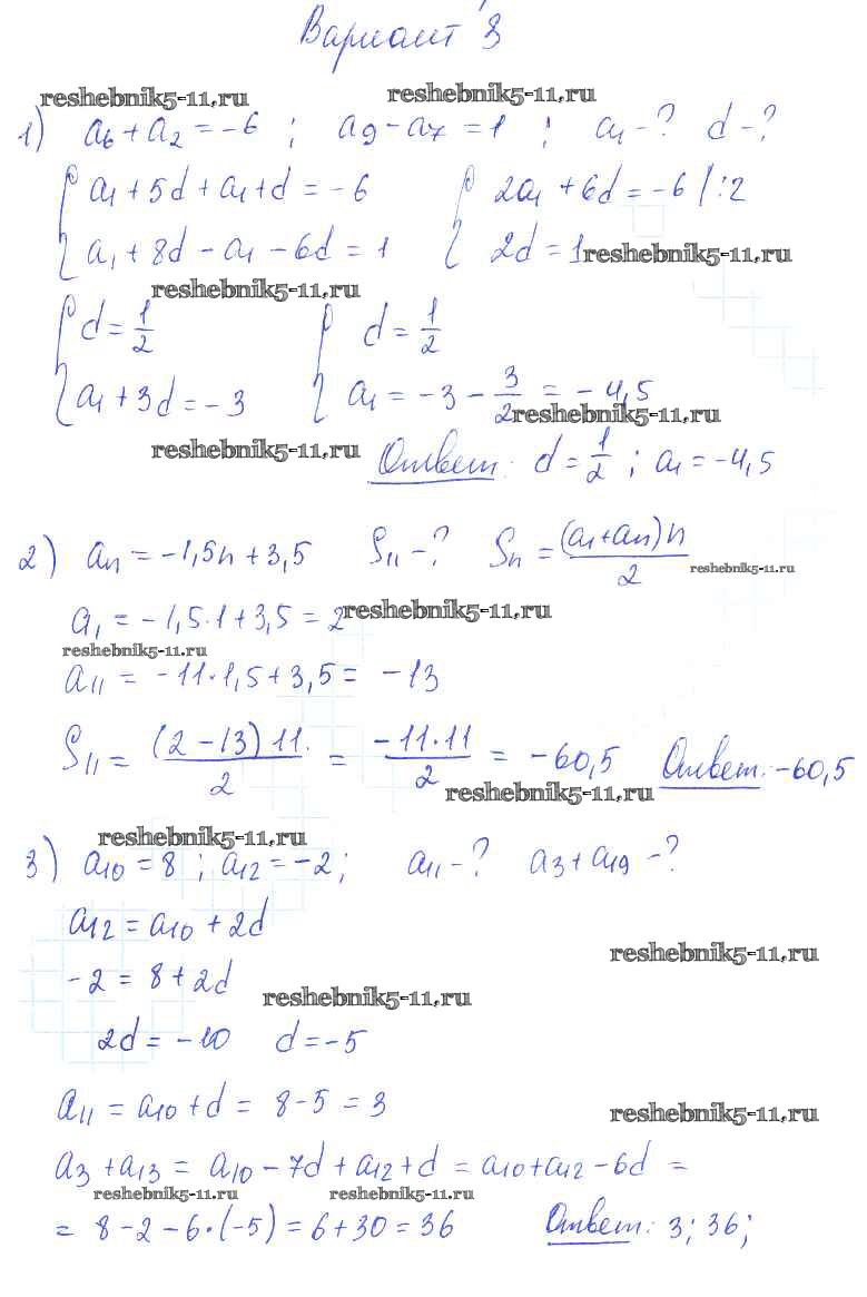 Готовая домашняя работа с ответами по Алгебре за 9 класс Александрова Самостоятельные работы УМК Базовый уровень Мнемозина 2016 ФГОС - СР-24. Арифметическая прогрессия вариант 3