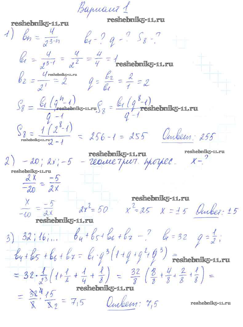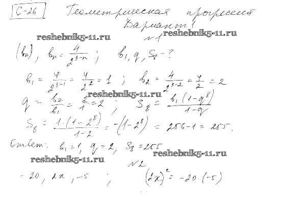 Готовая домашняя работа с ответами по Алгебре за 9 класс Александрова Самостоятельные работы УМК Базовый уровень Мнемозина 2016 ФГОС - СР-26. Геометрическая прогрессия вариант 1