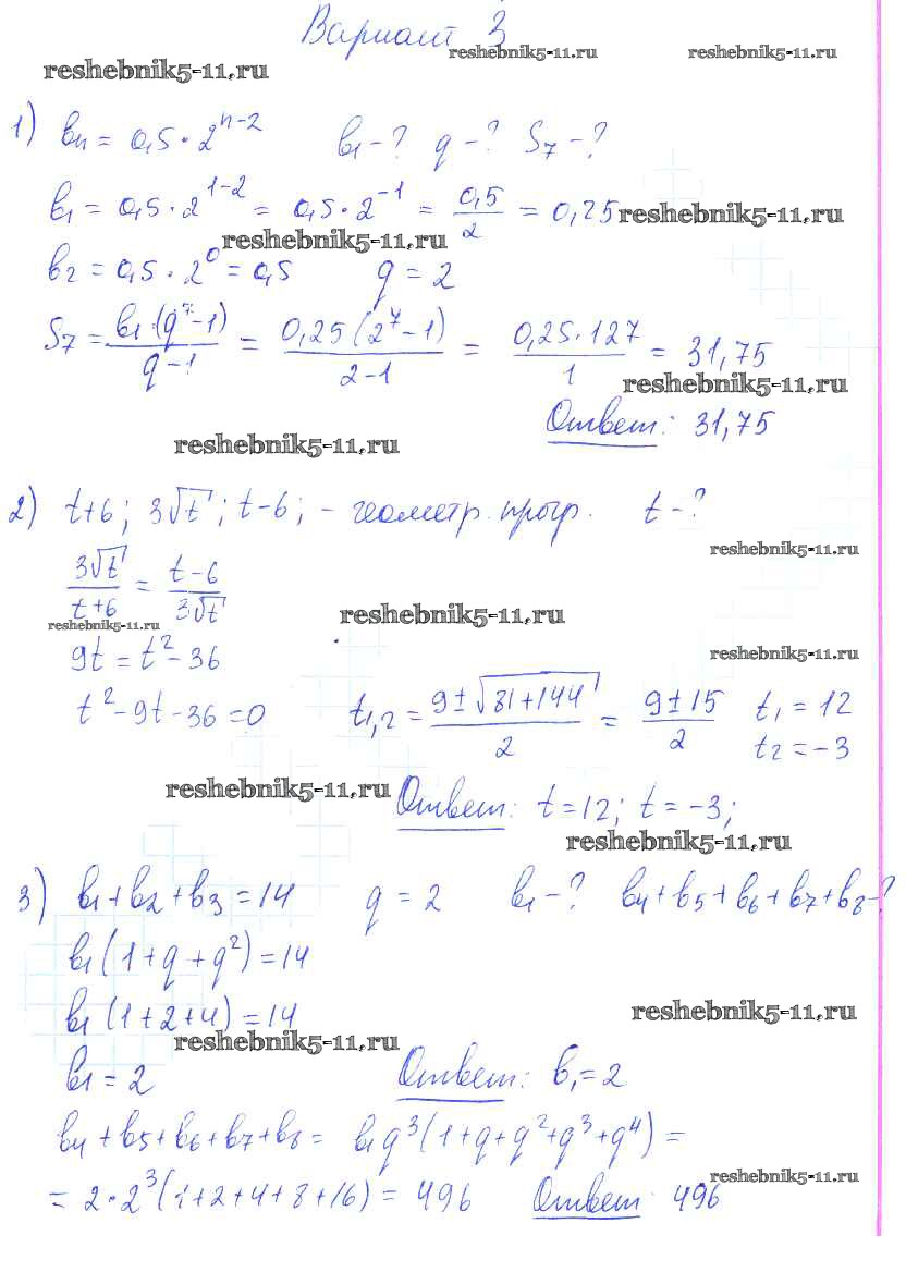 Готовая домашняя работа с ответами по Алгебре за 9 класс Александрова Самостоятельные работы УМК Базовый уровень Мнемозина 2016 ФГОС - СР-26. Геометрическая прогрессия вариант 3