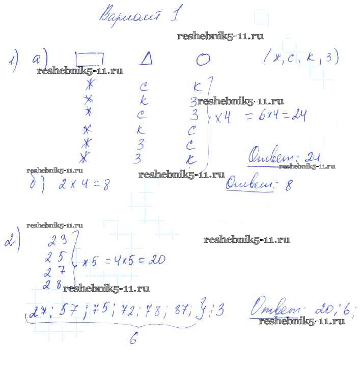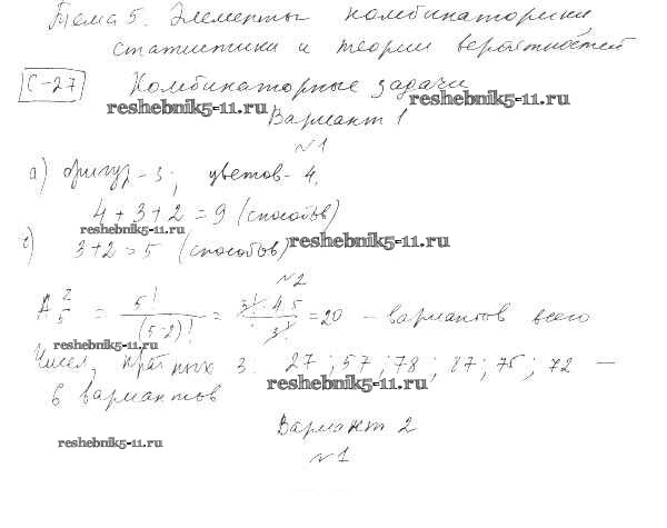 Готовая домашняя работа с ответами по Алгебре за 9 класс Александрова Самостоятельные работы УМК Базовый уровень Мнемозина 2016 ФГОС - СР-27. Комбинаторные задачи вариант 1
