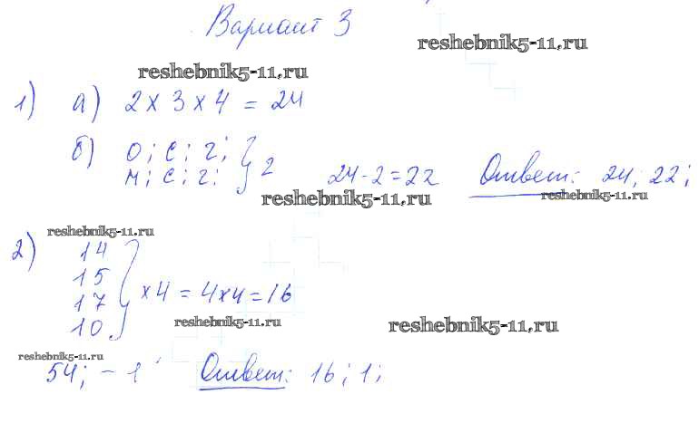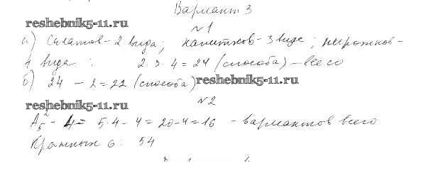 Готовая домашняя работа с ответами по Алгебре за 9 класс Александрова Самостоятельные работы УМК Базовый уровень Мнемозина 2016 ФГОС - СР-27. Комбинаторные задачи вариант 3