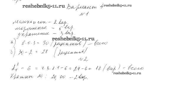 Готовая домашняя работа с ответами по Алгебре за 9 класс Александрова Самостоятельные работы УМК Базовый уровень Мнемозина 2016 ФГОС - СР-27. Комбинаторные задачи вариант 4
