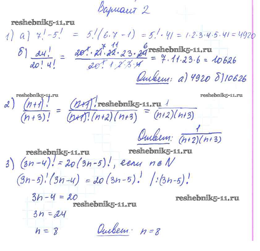 Готовая домашняя работа с ответами по Алгебре за 9 класс Александрова Самостоятельные работы УМК Базовый уровень Мнемозина 2016 ФГОС - СР-28. Комбинаторные задачи вариант 2