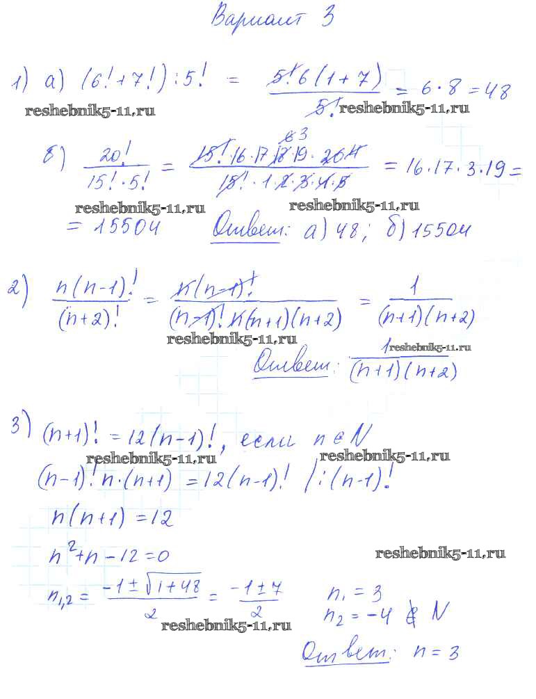Готовая домашняя работа с ответами по Алгебре за 9 класс Александрова Самостоятельные работы УМК Базовый уровень Мнемозина 2016 ФГОС - СР-28. Комбинаторные задачи вариант 3