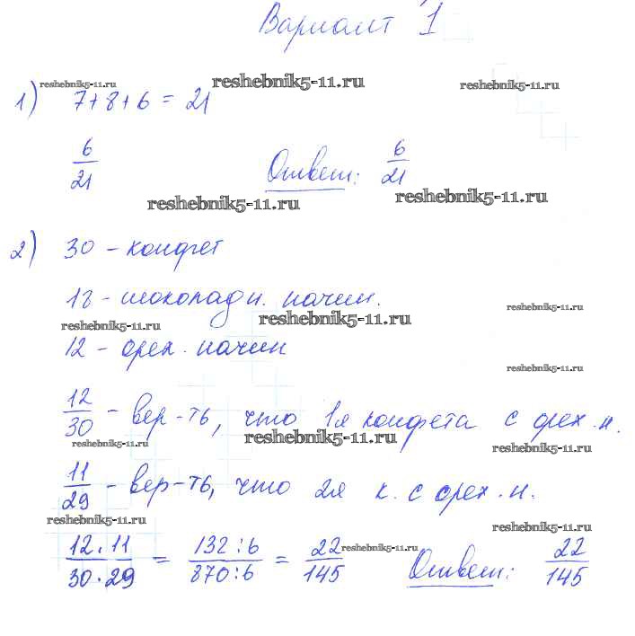Готовая домашняя работа с ответами по Алгебре за 9 класс Александрова Самостоятельные работы УМК Базовый уровень Мнемозина 2016 ФГОС - СР-31. Простейшие вероятностные задачи вариант 1