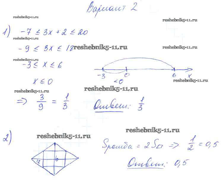 Готовая домашняя работа с ответами по Алгебре за 9 класс Александрова Самостоятельные работы УМК Базовый уровень Мнемозина 2016 ФГОС - СР-32. Простейшие вероятностные задачи вариант 2