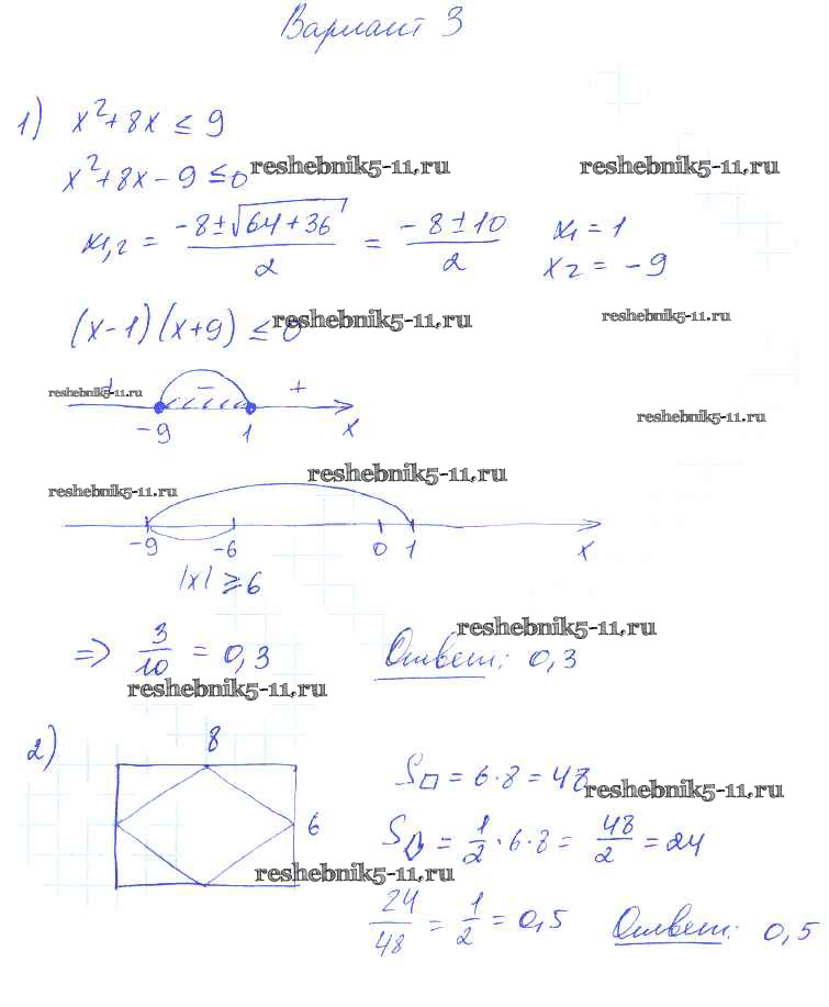 Готовая домашняя работа с ответами по Алгебре за 9 класс Александрова Самостоятельные работы УМК Базовый уровень Мнемозина 2016 ФГОС - СР-32. Простейшие вероятностные задачи вариант 3