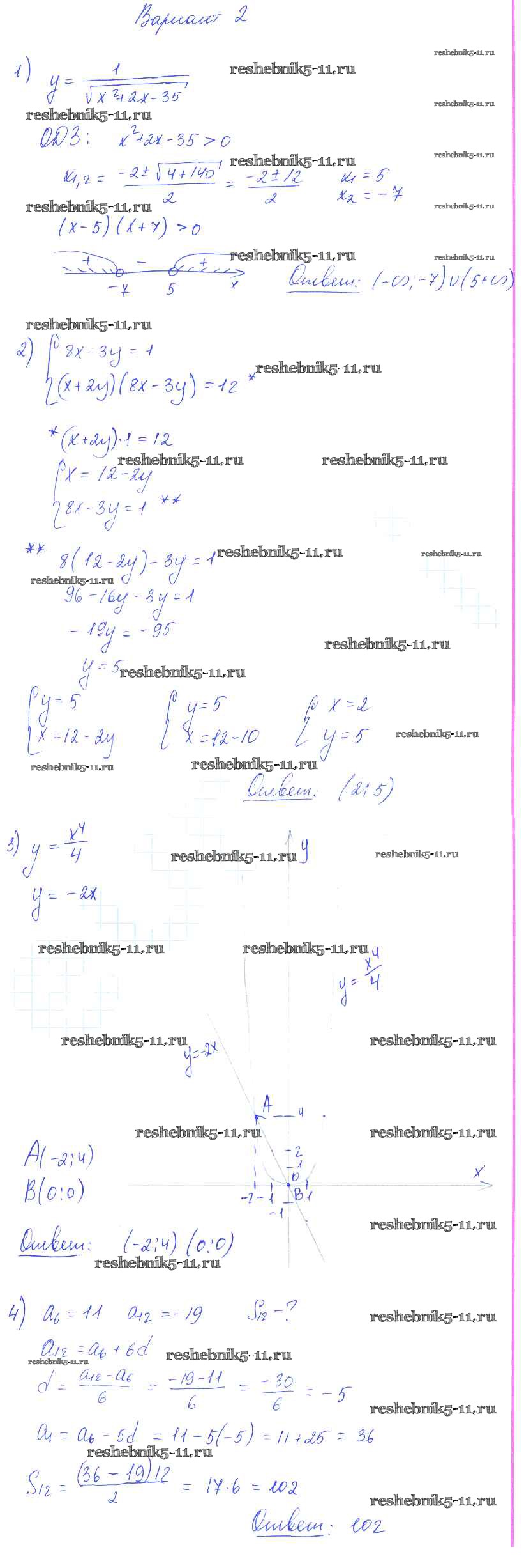 Готовая домашняя работа с ответами по Алгебре за 9 класс Александрова Самостоятельные работы УМК Базовый уровень Мнемозина 2016 ФГОС - СР-34. Итоговое повторение вариант 2
