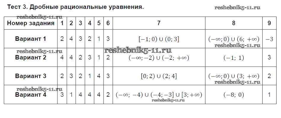 Готовая домашняя работа с ответами по Алгебре за 9 класс Дудницын, Кронгауз Тематические тесты Просвещение 2017 ФГОС - Тесты Тест 3. Дробные рациональные уравнения