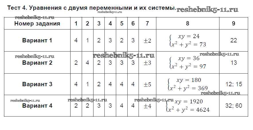 Готовая домашняя работа с ответами по Алгебре за 9 класс Дудницын, Кронгауз Тематические тесты Просвещение 2017 ФГОС - Тесты Тест 4. Уравнения с двумя переменными и их системы