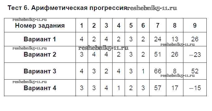 Тест 6. Арифметическая прогрессия