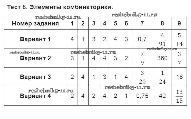 Готовая домашняя работа с ответами по Алгебре за 9 класс Дудницын, Кронгауз Тематические тесты Просвещение 2017 ФГОС - Тесты Тест 8. Элементы комбинаторики