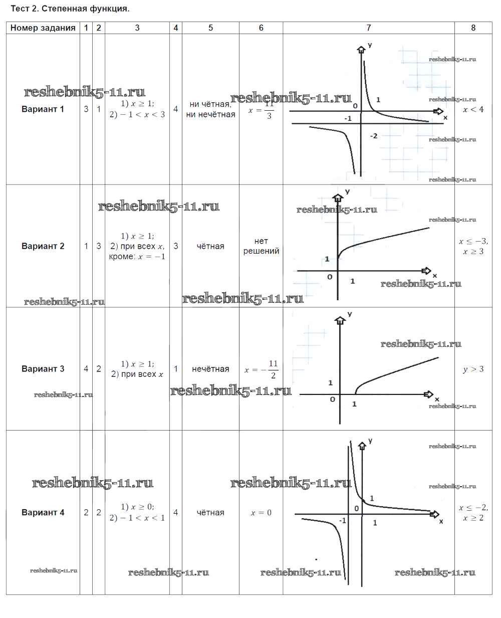 Готовая домашняя работа с ответами по Алгебре за 9 класс Ткачева Тематические тесты Просвещение 2014 ФГОС - Тесты Тест № 2. Степенная функция