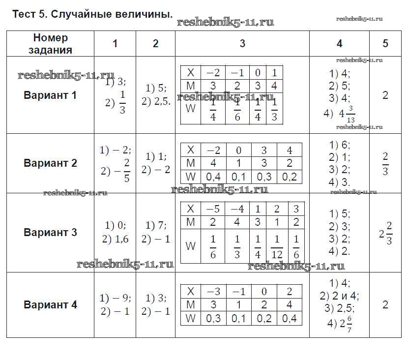 Готовая домашняя работа с ответами по Алгебре за 9 класс Ткачева Тематические тесты Просвещение 2014 ФГОС - Тесты Тест № 5. Случайные величины