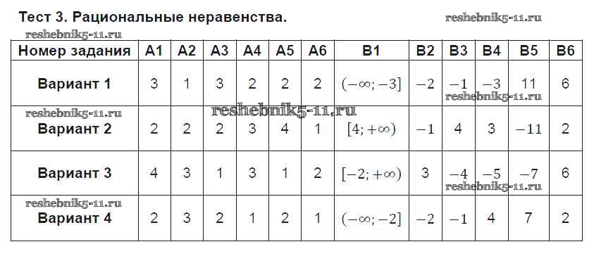Готовая домашняя работа с ответами по Алгебре за 9 класс Чулков, Струков Тематические тесты Просвещение 2017 ФГОС - Тесты Тест №3. Рациональные неравенства