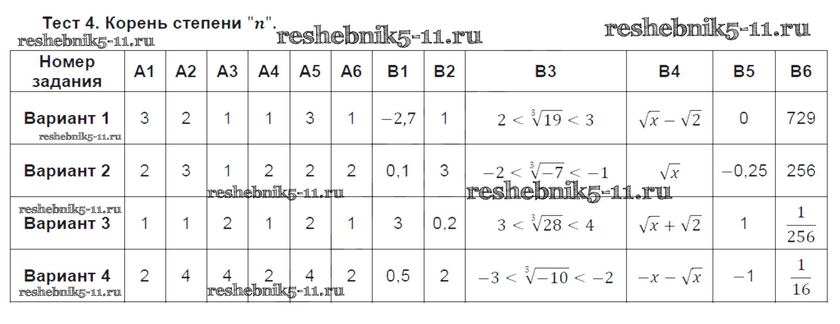 Готовая домашняя работа с ответами по Алгебре за 9 класс Чулков, Струков Тематические тесты Просвещение 2017 ФГОС - Тесты Тест №4. Корень степени n