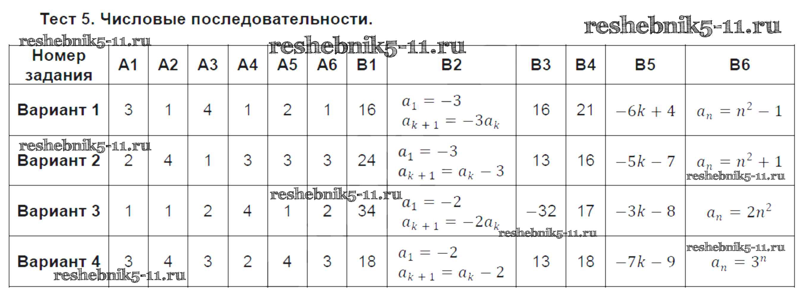 Готовая домашняя работа с ответами по Алгебре за 9 класс Чулков, Струков Тематические тесты Просвещение 2017 ФГОС - Тесты Тест №5. Числовые последовательности