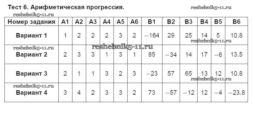 Готовая домашняя работа с ответами по Алгебре за 9 класс Чулков, Струков Тематические тесты Просвещение 2017 ФГОС - Тесты Тест №6. Арифметическая прогрессия