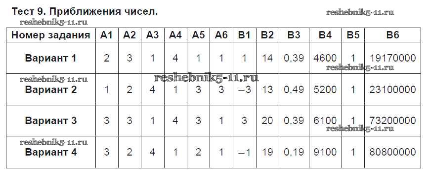 Готовая домашняя работа с ответами по Алгебре за 9 класс Чулков, Струков Тематические тесты Просвещение 2017 ФГОС - Тесты Тест №9. Приближения чисел