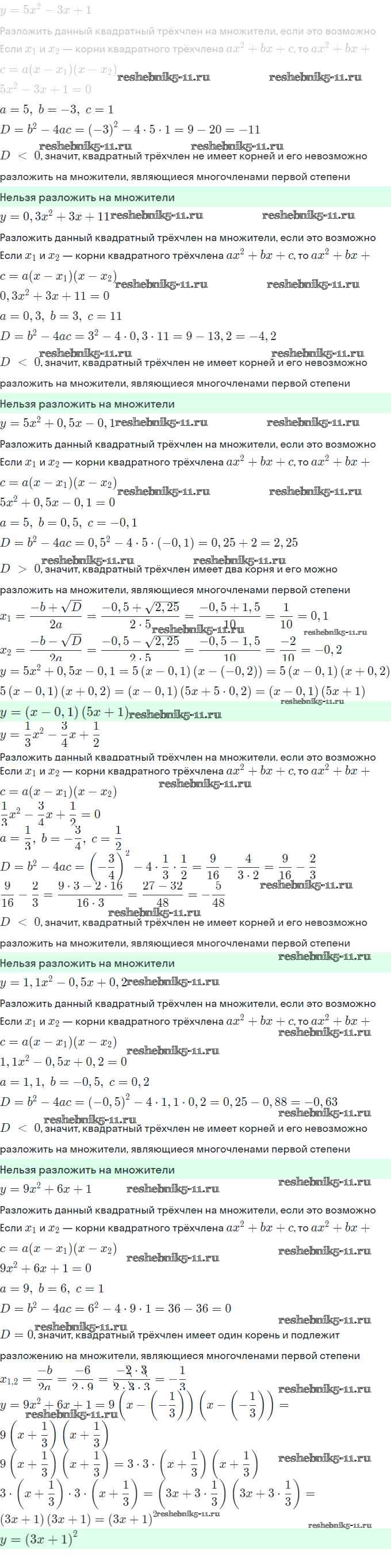 Готовая домашняя работа с ответами по Алгебре за 9 класс Миндюк, Шлыкова Рабочая тетрадь Часть 1, 2 Просвещение 2018 - §4. Разложение квадратного трёхчлена на множители 3