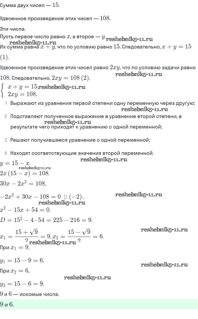 Готовая домашняя работа с ответами по Алгебре за 9 класс Миндюк, Шлыкова Рабочая тетрадь Часть 1, 2 Просвещение 2018 - §17. Решение задач с помощью систем уравнений второй степени 1