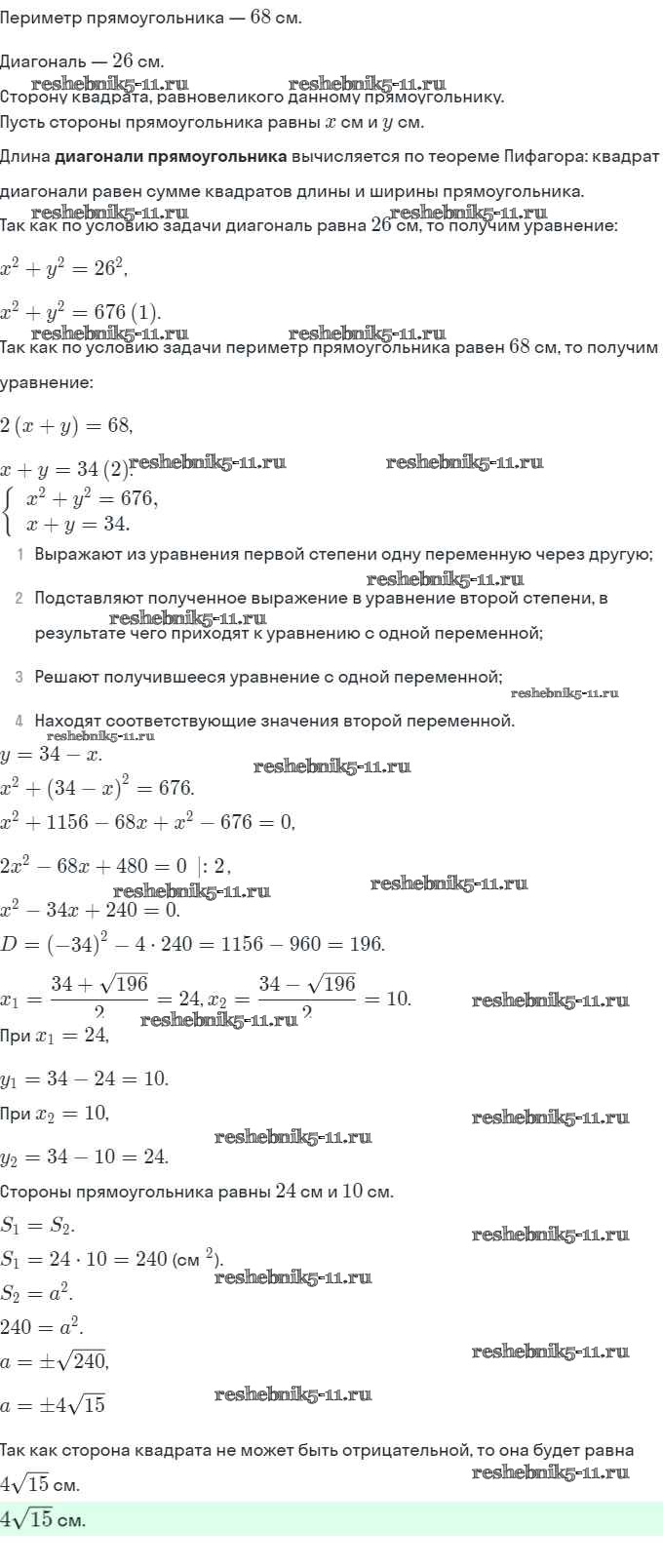 Готовая домашняя работа с ответами по Алгебре за 9 класс Миндюк, Шлыкова Рабочая тетрадь Часть 1, 2 Просвещение 2018 - §17. Решение задач с помощью систем уравнений второй степени 12