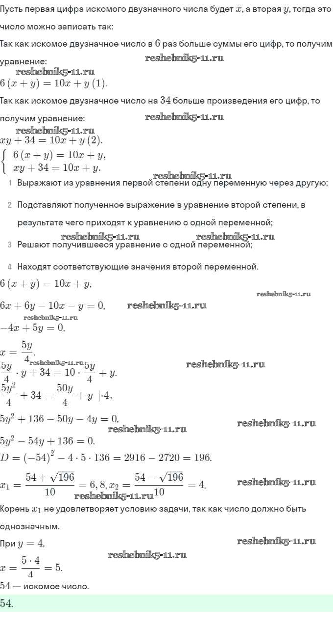 Готовая домашняя работа с ответами по Алгебре за 9 класс Миндюк, Шлыкова Рабочая тетрадь Часть 1, 2 Просвещение 2018 - §17. Решение задач с помощью систем уравнений второй степени 13