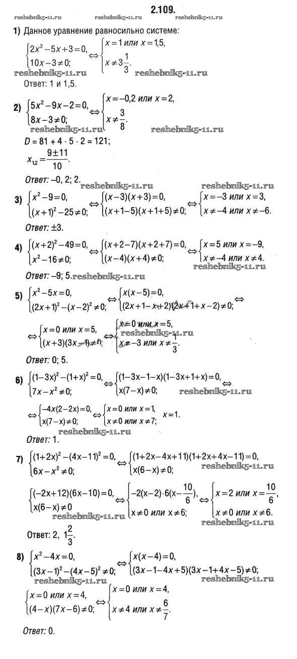 Готовая домашняя работа с ответами по Алгебре за 9 класс Кузнецова, Муравьева, Шнеперман Учебник Народная асвета 2015 - Глава 2 2.109