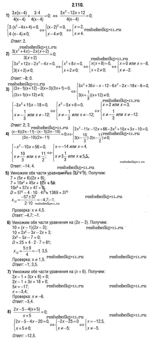 Готовая домашняя работа с ответами по Алгебре за 9 класс Кузнецова, Муравьева, Шнеперман Учебник Народная асвета 2015 - Глава 2 2.110