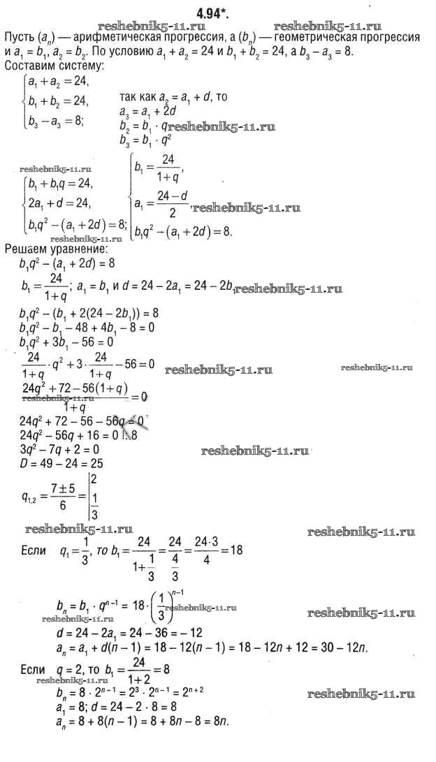 Готовая домашняя работа с ответами по Алгебре за 9 класс Кузнецова, Муравьева, Шнеперман Учебник Народная асвета 2015 - Глава 4 4.94