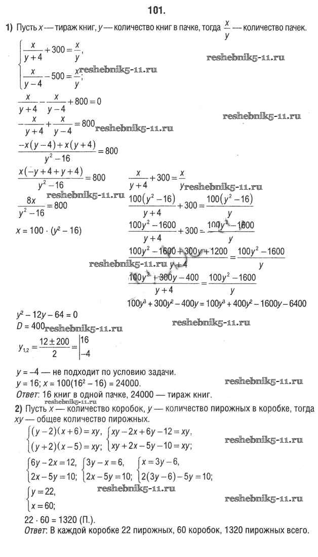 Готовая домашняя работа с ответами по Алгебре за 9 класс Кузнецова, Муравьева, Шнеперман Учебник Народная асвета 2015 - Повторение 101