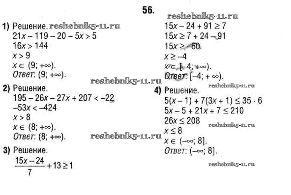 Готовая домашняя работа с ответами по Алгебре за 9 класс Кузнецова, Муравьева, Шнеперман Учебник Народная асвета 2015 - Повторение 56