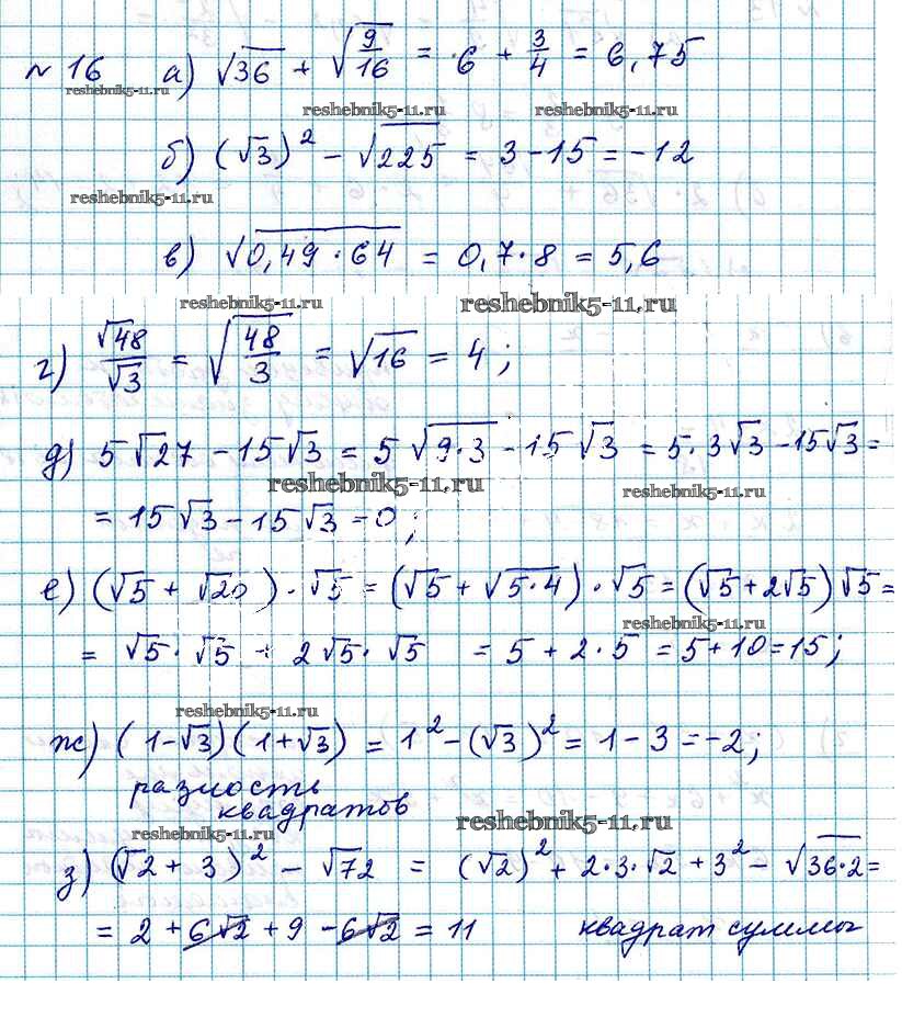 Готовая домашняя работа с ответами по Алгебре за 9 класс Арефьева, Пирютко Учебник Народная асвета 2019 - Повторение 16
