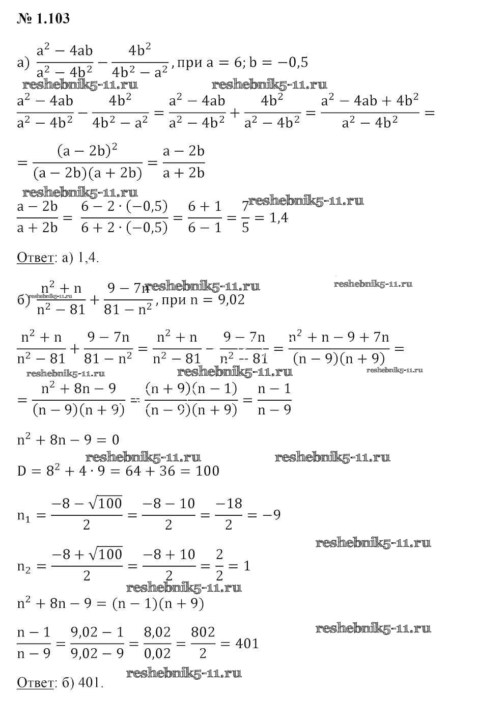 Готовая домашняя работа с ответами по Алгебре за 9 класс Арефьева, Пирютко Учебник Народная асвета 2019 - Задания 1.103
