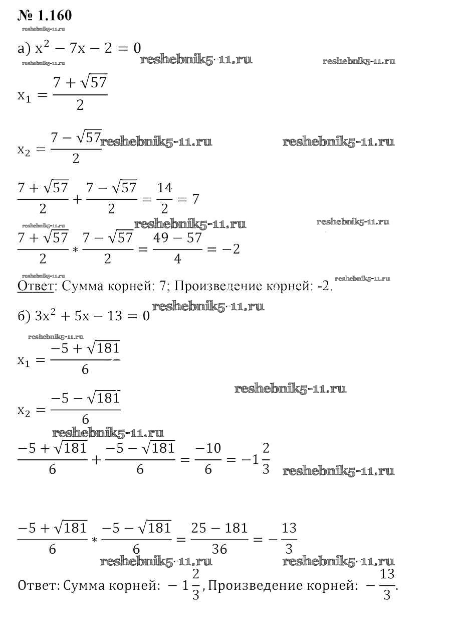 Готовая домашняя работа с ответами по Алгебре за 9 класс Арефьева, Пирютко Учебник Народная асвета 2019 - Задания 1.160