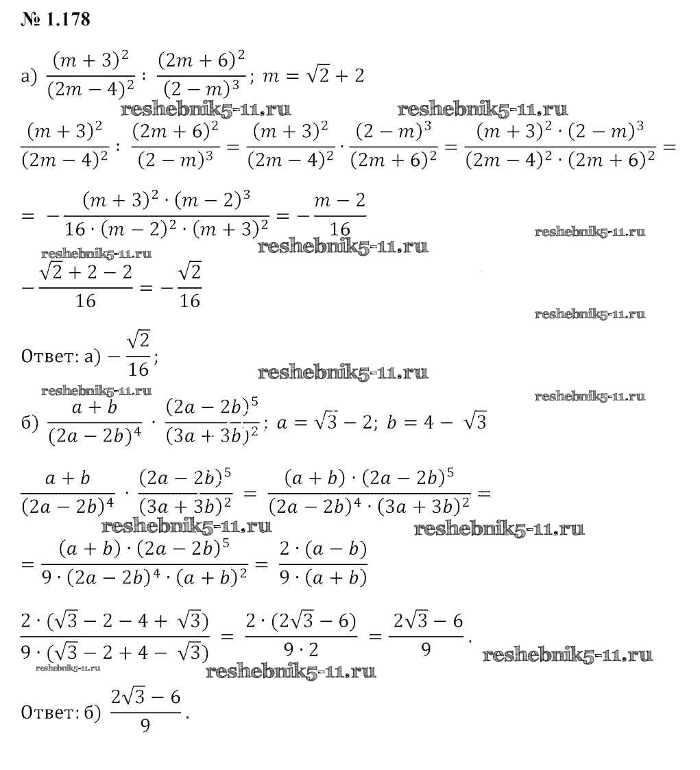 Готовая домашняя работа с ответами по Алгебре за 9 класс Арефьева, Пирютко Учебник Народная асвета 2019 - Задания 1.178