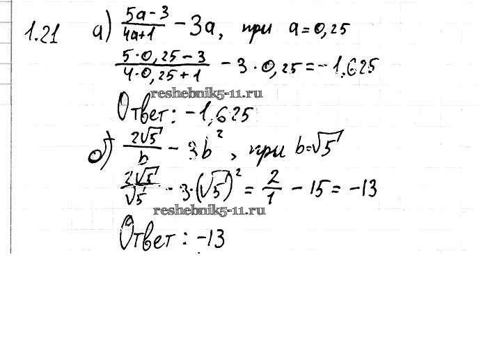 Готовая домашняя работа с ответами по Алгебре за 9 класс Арефьева, Пирютко Учебник Народная асвета 2019 - Задания 1.21