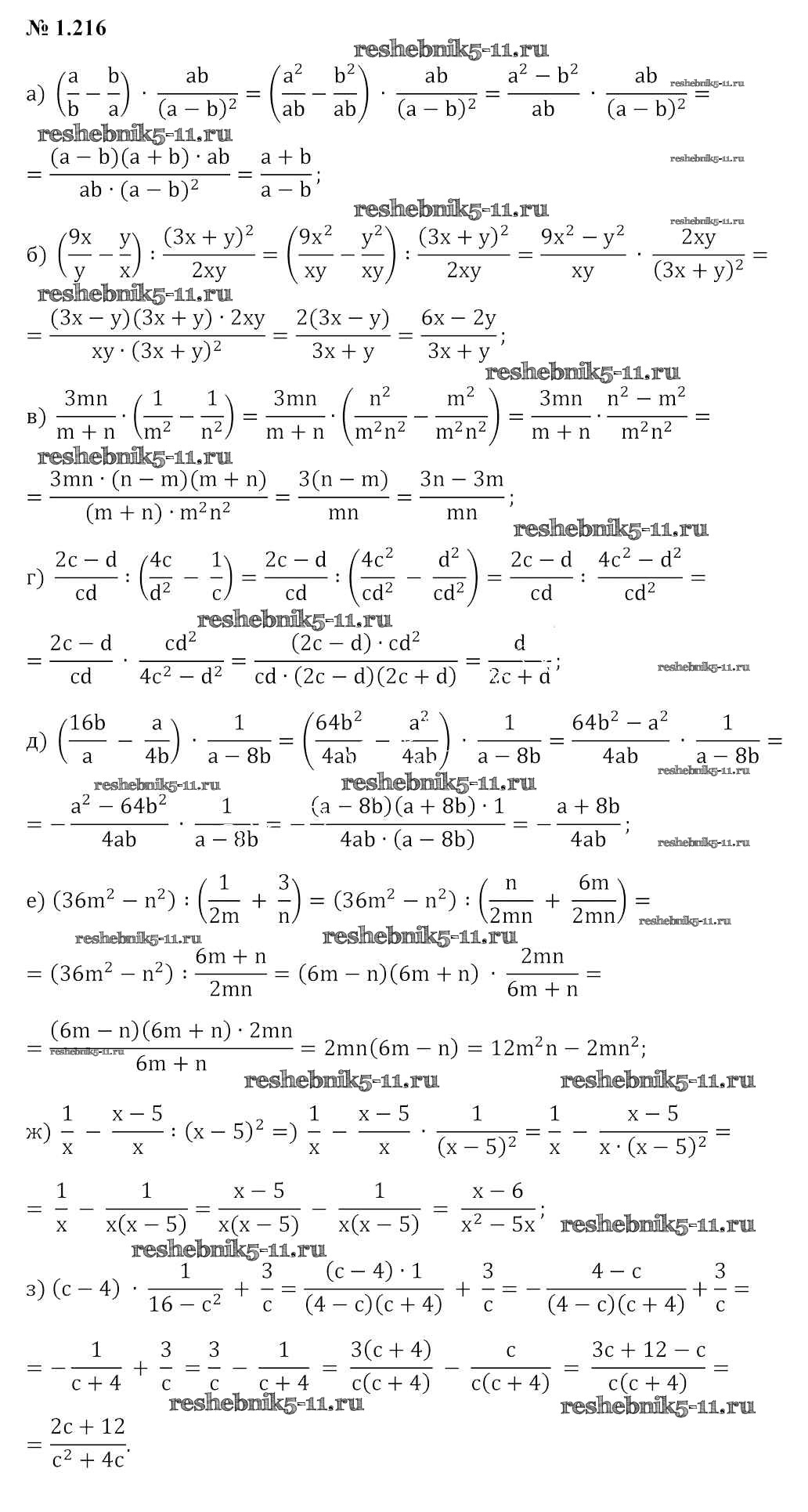 Готовая домашняя работа с ответами по Алгебре за 9 класс Арефьева, Пирютко Учебник Народная асвета 2019 - Задания 1.216