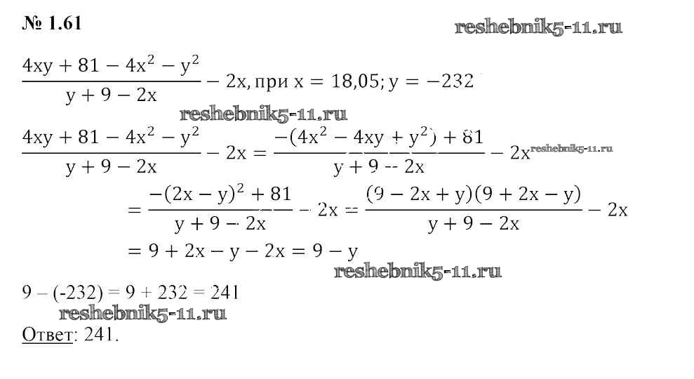 Готовая домашняя работа с ответами по Алгебре за 9 класс Арефьева, Пирютко Учебник Народная асвета 2019 - Задания 1.61