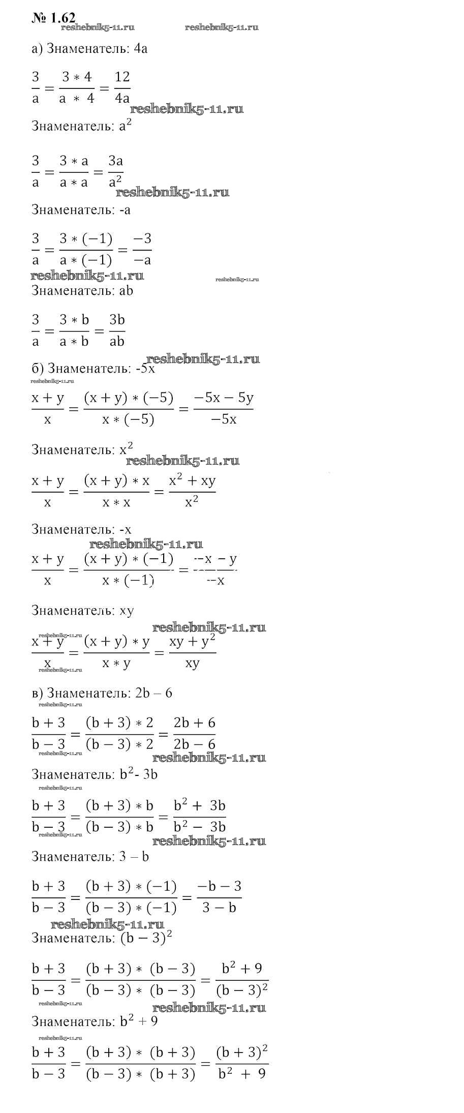 Готовая домашняя работа с ответами по Алгебре за 9 класс Арефьева, Пирютко Учебник Народная асвета 2019 - Задания 1.62
