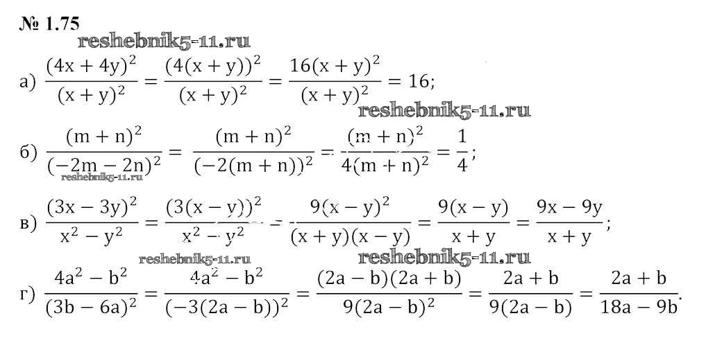 Готовая домашняя работа с ответами по Алгебре за 9 класс Арефьева, Пирютко Учебник Народная асвета 2019 - Задания 1.75