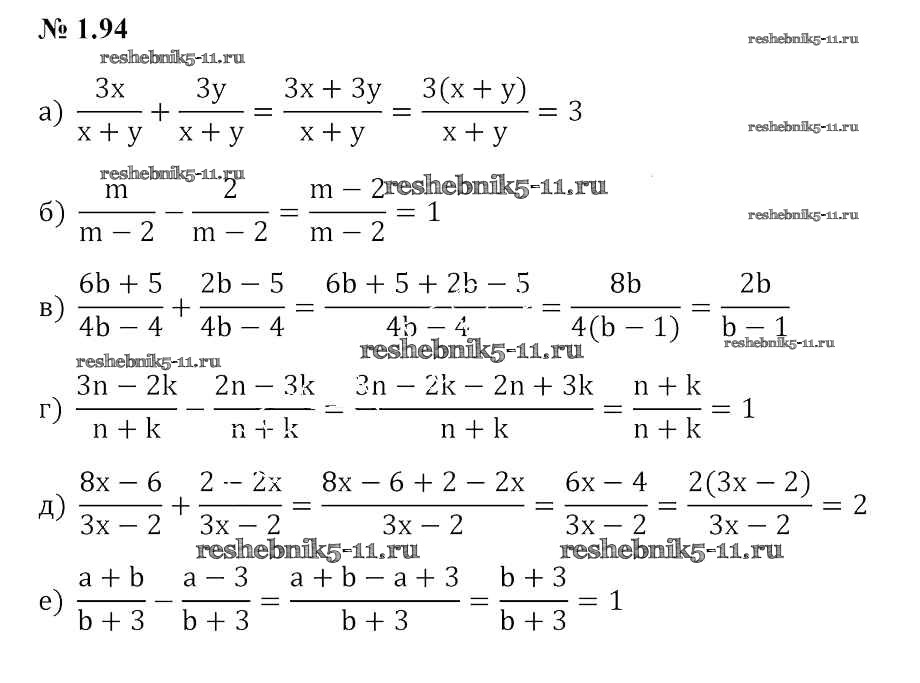 Готовая домашняя работа с ответами по Алгебре за 9 класс Арефьева, Пирютко Учебник Народная асвета 2019 - Задания 1.94