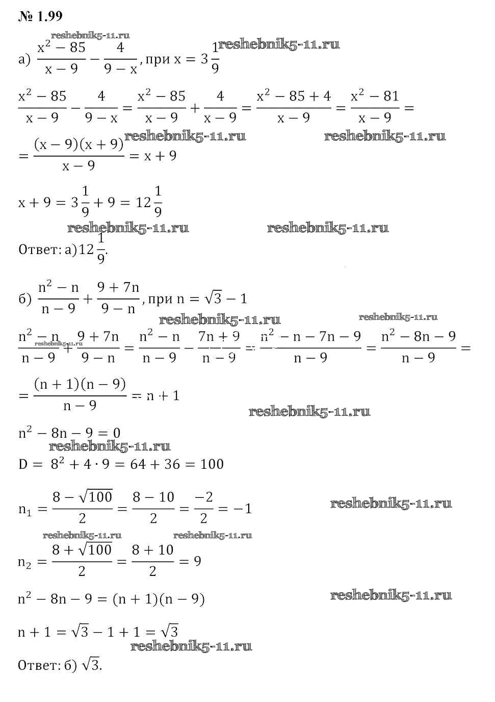 Готовая домашняя работа с ответами по Алгебре за 9 класс Арефьева, Пирютко Учебник Народная асвета 2019 - Задания 1.99