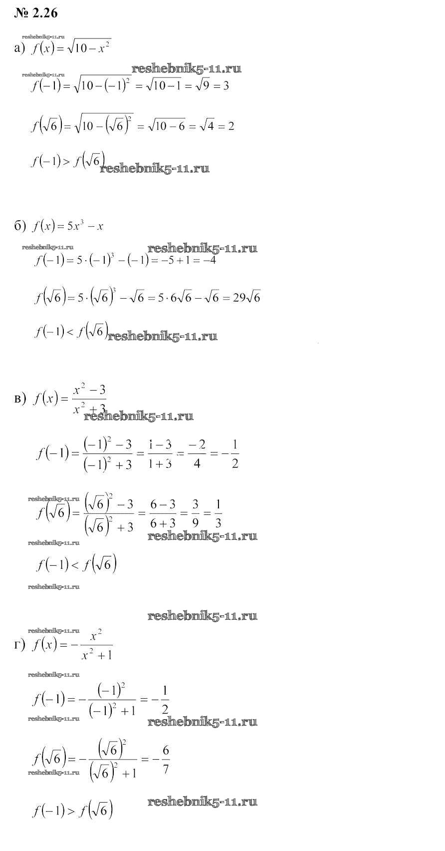 Готовая домашняя работа с ответами по Алгебре за 9 класс Арефьева, Пирютко Учебник Народная асвета 2019 - Задания 2.26