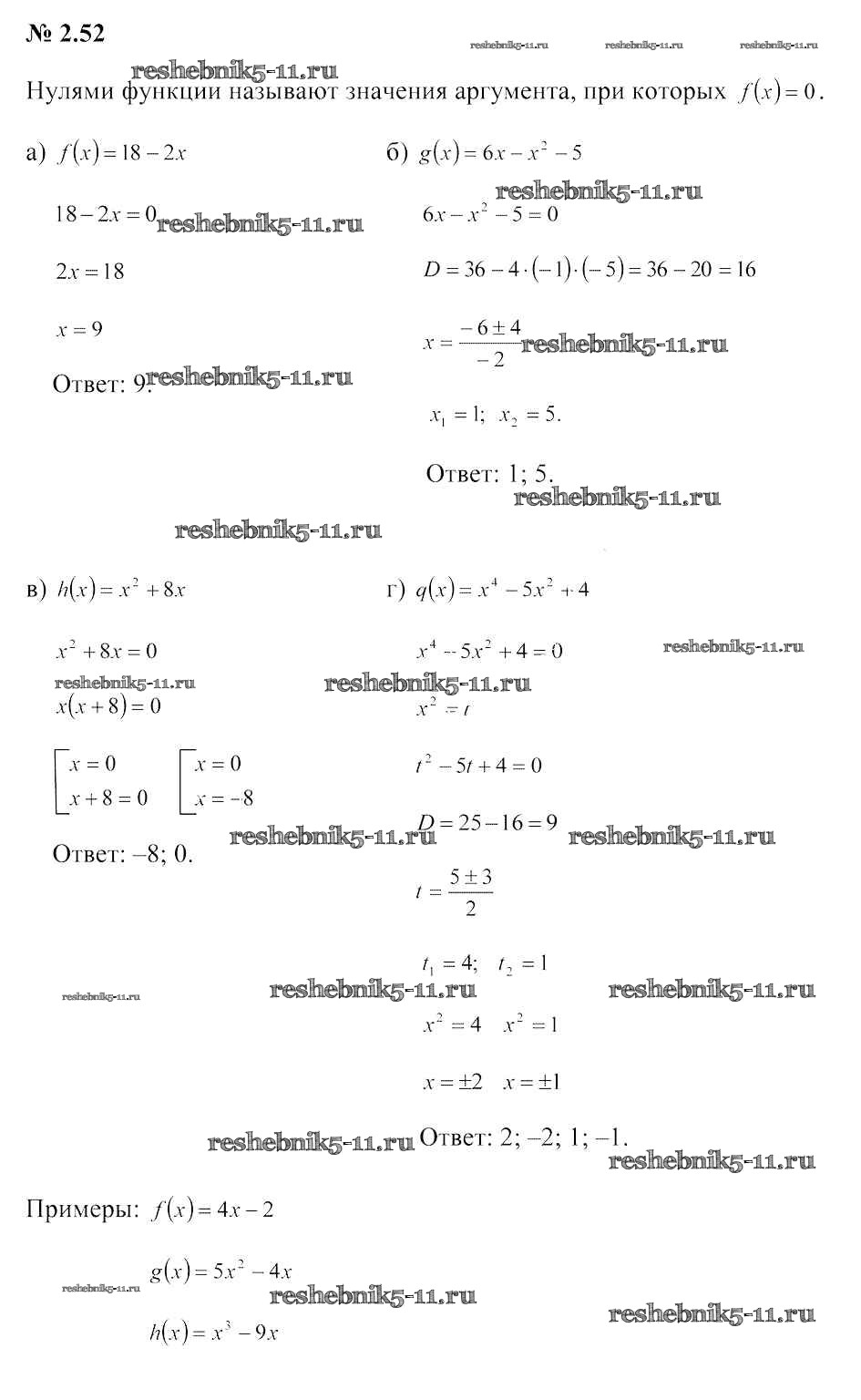 Готовая домашняя работа с ответами по Алгебре за 9 класс Арефьева, Пирютко Учебник Народная асвета 2019 - Задания 2.52