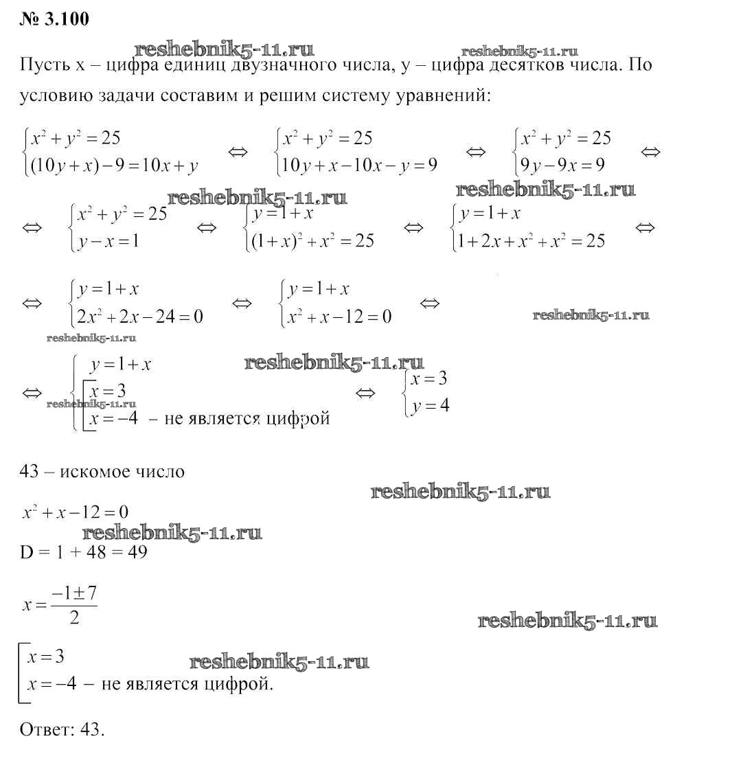 Готовая домашняя работа с ответами по Алгебре за 9 класс Арефьева, Пирютко Учебник Народная асвета 2019 - Задания 3.100