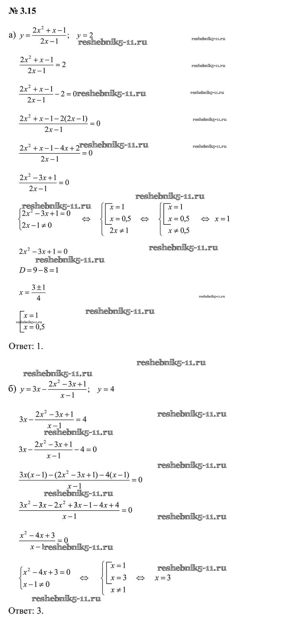 Готовая домашняя работа с ответами по Алгебре за 9 класс Арефьева, Пирютко Учебник Народная асвета 2019 - Задания 3.15